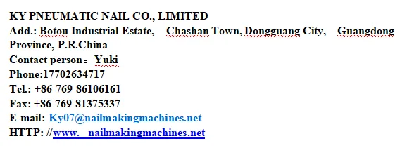 Founded in 1995, Dongguan KY Pneumatic Nail Co., Limited is a professional manufacturer of all kinds of pneumatic staples, nails, and staple and nail making machinery with strong technical force and production abilities. Furthermore, our engineers and skillful technical staff members are also