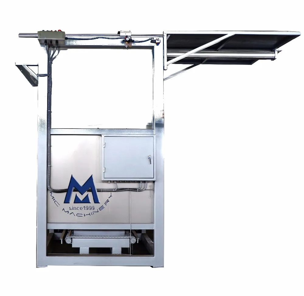 Micmachinery’ empty Can depalletizer is the customized, small foot print, semi automated depalletizer.It’s designed with space and cost saving principle.It is capable of depalletizing multiple sized packages of various material.(Aluminum Cans, Tin Cans, Glass bottle, etc). The Can Depalletizer is fully automated once the pallet is inserted and the straps and tier frame are removed.