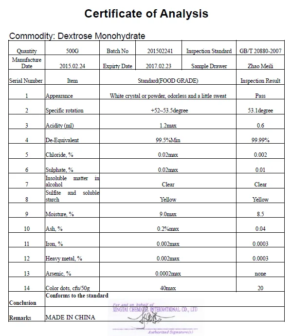 Dextrose Monohydrate Food Grade