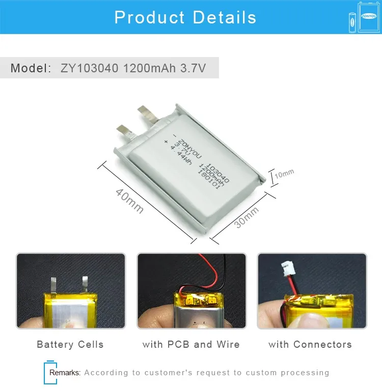 ZONYOU is a well-known manufacturer of lithium-ion batteries in China. We have two operate factories in Huizhou. We mainly engaged in Li-ion battery and Li-polymer battery pack. We've established firm business relationship with more than 1000 companies in domestic and overseas market. We registered our own brand,and have rich experience in research, development and manufacture batteries, you may save much more time and cost by ordering directly from us.