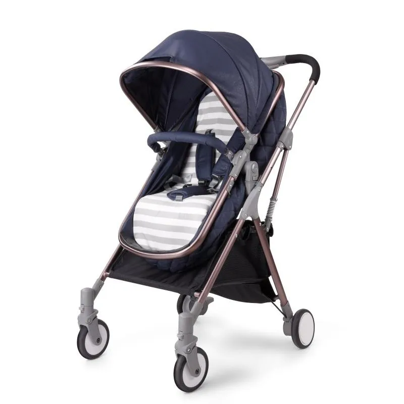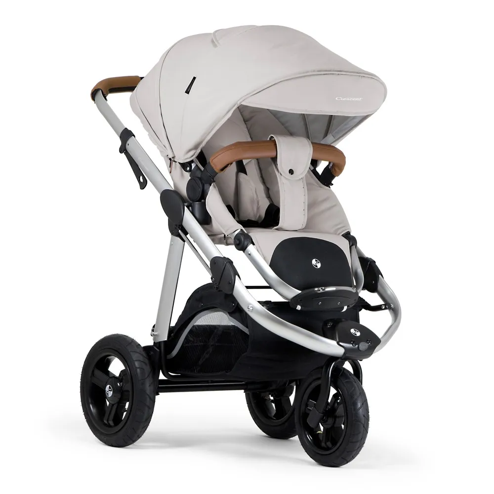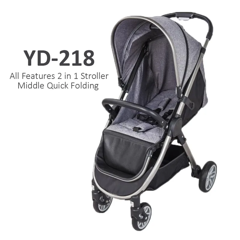 Alloy Aluminium frame, elliptical anodize tubing, removable seat unit in two easy steps, can be placed forwards or backwards, 5-point safety harness, telescopic push handle with one hand folding, winter/summer canopy removable machine-washable seat covers.