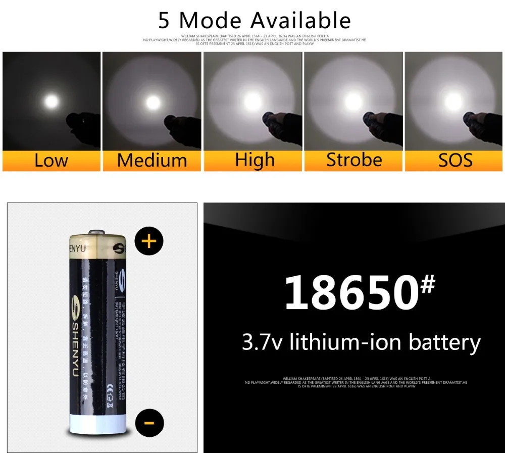Mode | High-Medium-Low-Strobe-SOS |