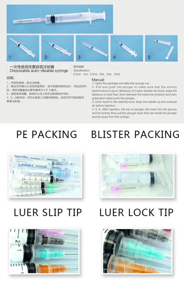 | Product Name: self destructive syringe 0.05ml 0.5ml 1ml 2.5ml 3ml 5ml 10ml | |