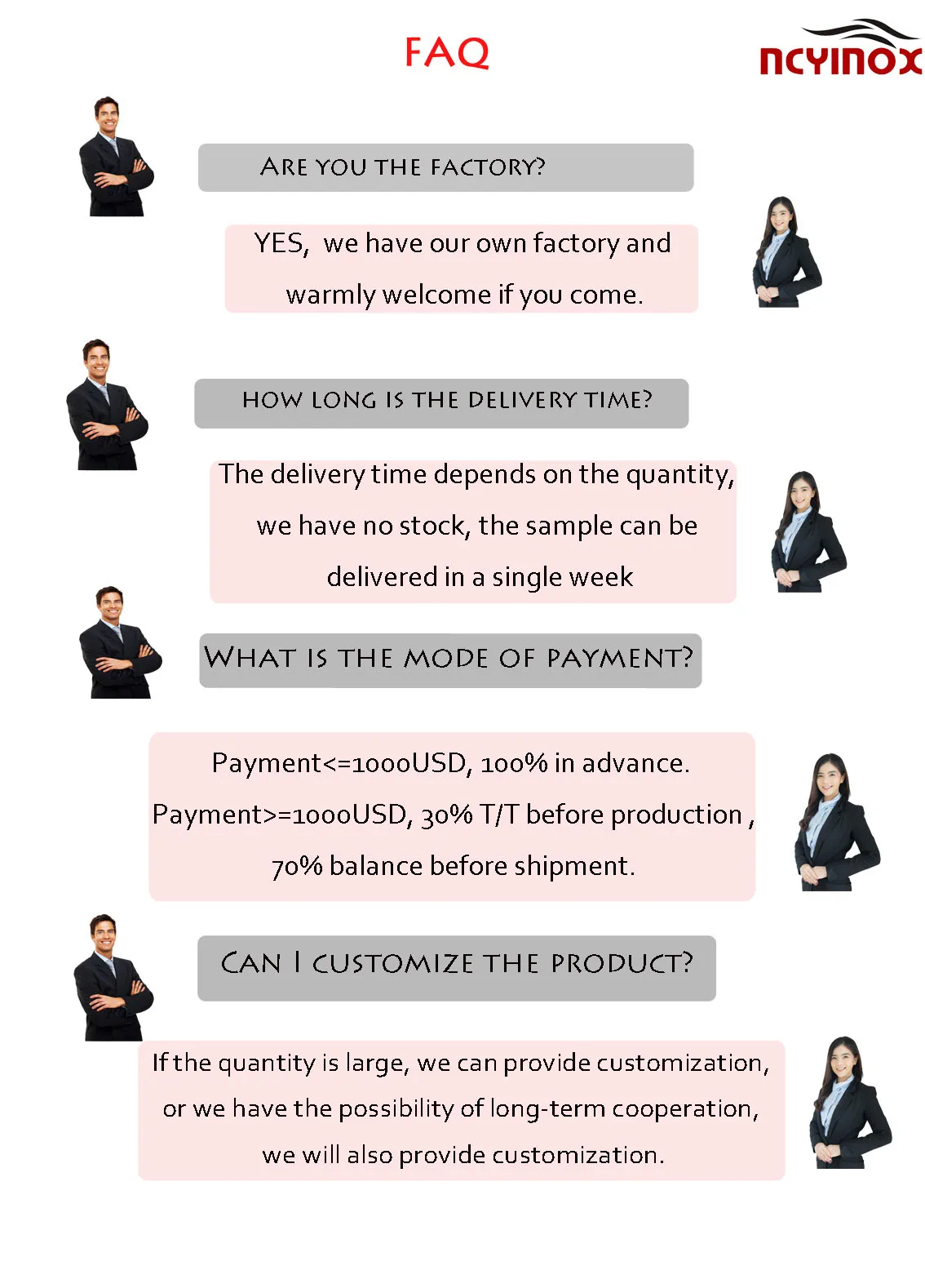 Brand | NCYINOX | Customization | Logo & Package(MOQ=1000) |