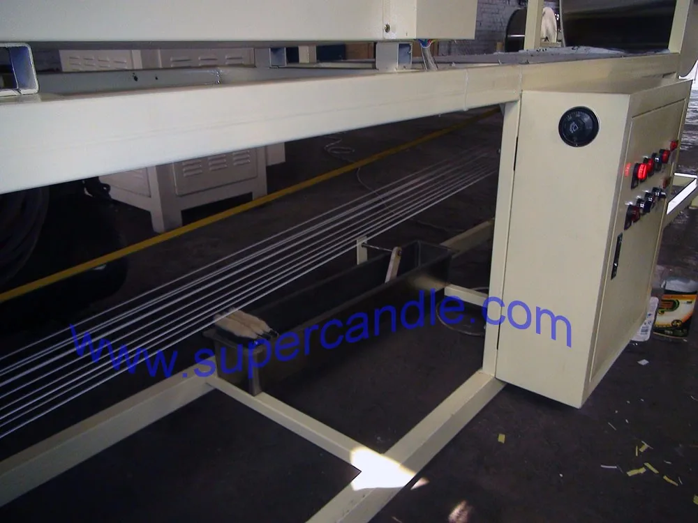 The candle wick dipping machine is to apply a thin layer of wax around wick. The two wick rolling drums of wick dipping machine are made of stainless steel sheet, which is not only easy to clean, but also corrosion proof. Wax temperature is controlled by thermostat, making the operation safer. The wick is repeatedly led through the molten wax and suitable calibrators until it reaches the desired diameter. The wick dipping machine is highly productive, and produces 2000 meters of waxed wick per hour. The wick dipping machine is automatic, user friendly, and operator needs no special training.