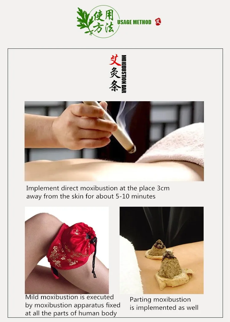 Moxa sticks can cure diseases by moxibustion, regulate qi and blood, remove cold dampness, warm main and collateral channels and hemostasis, relieve pain, warm stomach, stop dysentery, expel stagnation, remove dampness and relieve itching.