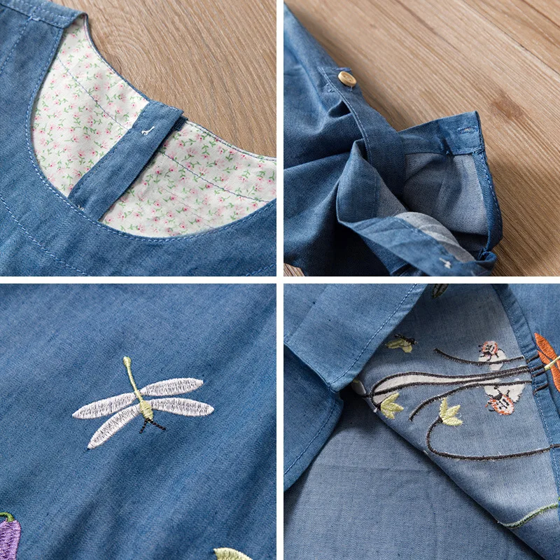 2021 European and American dragonfly embroidery girls imitation denim dress