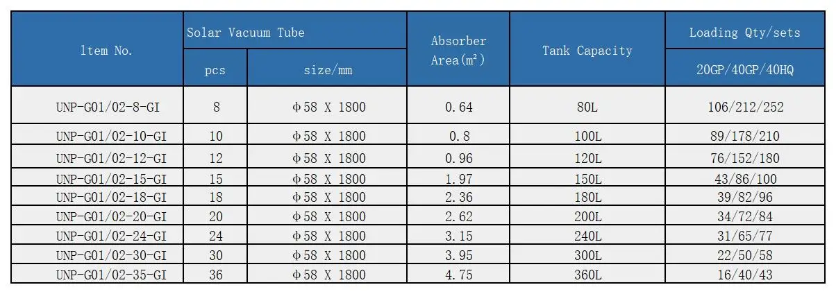Evacuated Tubes or Heat Pipes | 10 years |