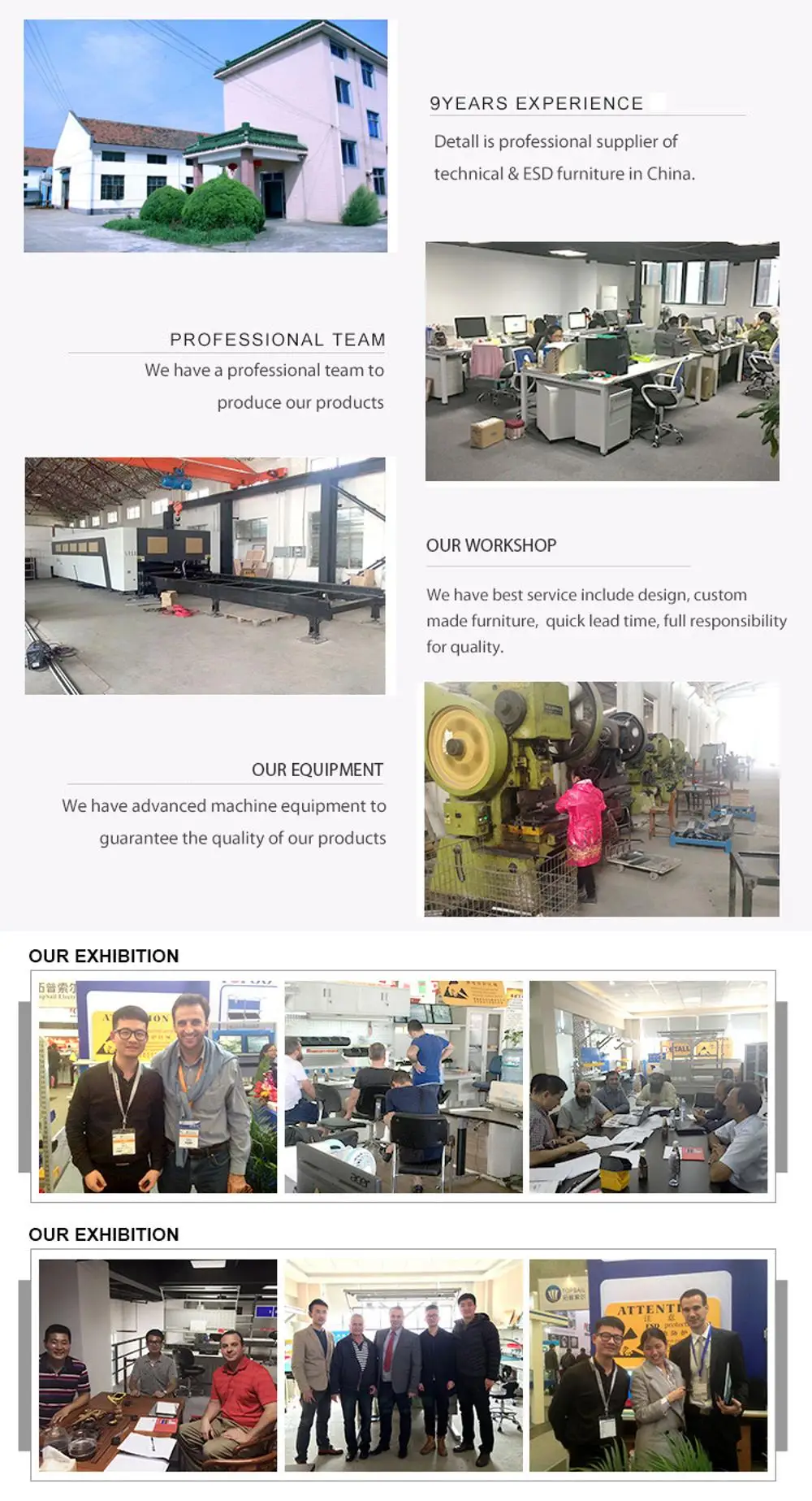 | A : we offer 3-5 years lifetime warranty for ESD work table metal parts, and 1 year warranty for other parts |