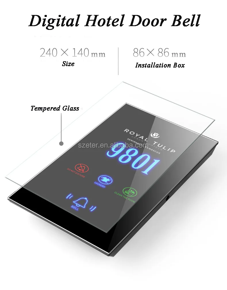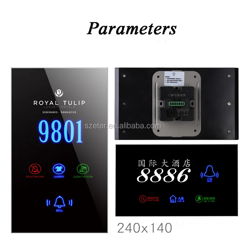 Wired Hotel Room Door Bell Hotel System, D.N.D, MAKE UP, WAITING Door Number Plates for Hotel