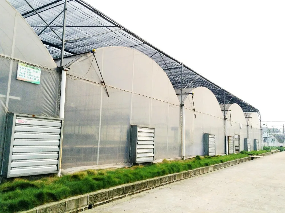 Double arch and double film or single thin film is adopted for the top. Double film, single film, PC sheet or other covering material can be selected for the periphery. Generally, double film covering is adopted in north area while single film covering is mostly adopted in the south.