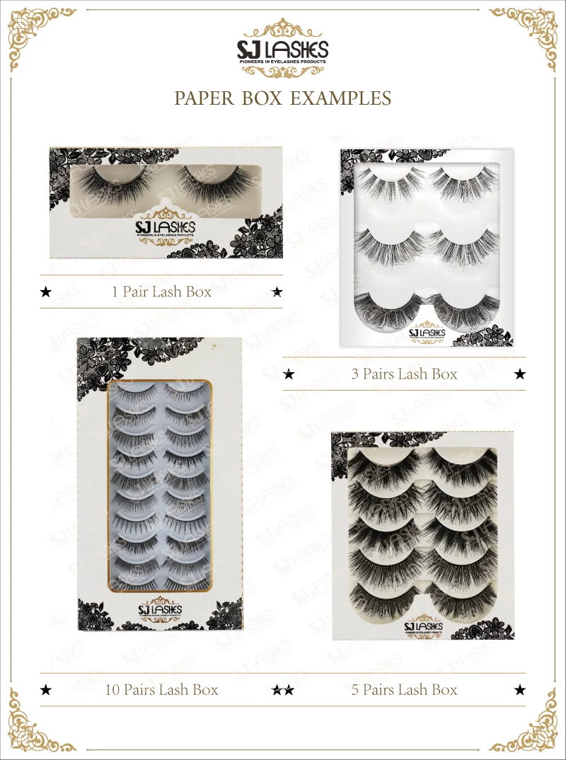 SJ LASHES is lash manufacture with more than 10 years' experience on lash production and private label packaging design. With wide product ranges, we provide strip lashes, flare lashes and eyelash extensions products made from synthetic fiber with premium quality, sterilized real animal hair and human hair. Also, we have a group of experienced graphic artists for private label packaging design with your logo.