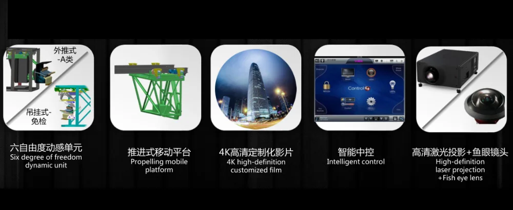 Since the 90 s, the film culture industry by the world wide attention from all walks of life and achieved good development in the field of business.At present the application of simulation technology is very wide, is widely used in urban planning, tourism, medical, entertainment of art science and education, aerospace and other industries, one of the most common application mainly concentrated in the dynamic simulator and dynamic cinema.And dynamic simulator and conventional dynamic cinema, theater flight fly is omni-directional stereo surround type let visitors experience a new kind of amusement equipment.It is set in advance good simulation scenarios, through the hemisphere screen projection, based on the operator's sight, hearing and the posture change, real time feel the rise and fall, lie on your back, subduction, screening during synchronous melting by storm, thunder storm, impact, vibration and other special effects, at the same time cooperate with lighting and audio, visual rendering of scene simulation, have very strong immersive, has the good market prospect.