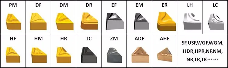 3 | DM | Double sided chip breaker for medium machining. Wide range of application due to excellent balance of sharpness and cutting edge stability. | SANDVIK(PM), SECO(MF2), KYOCERA(HQ) |