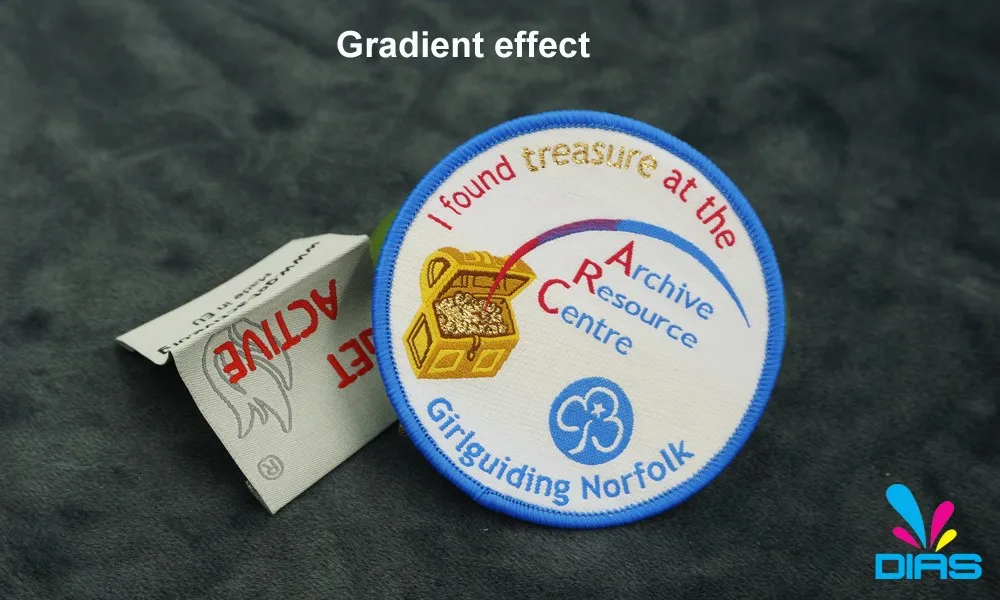 Our main products are woven badges, woven patches, scout badges, woven labels, woven tape, embroidered badges, printed labels, care labels, dye sublimation printed badge, reflective woven badges, glow in the dark woven badges, woven key chains ,woven wristbands and padded woven items. Since the establishment of DIAS, we have gained international reputation by improving our techniques and services constantly. Our current customers are widely distributed in Europe, North America, South America, Africa, Oceania and other places.