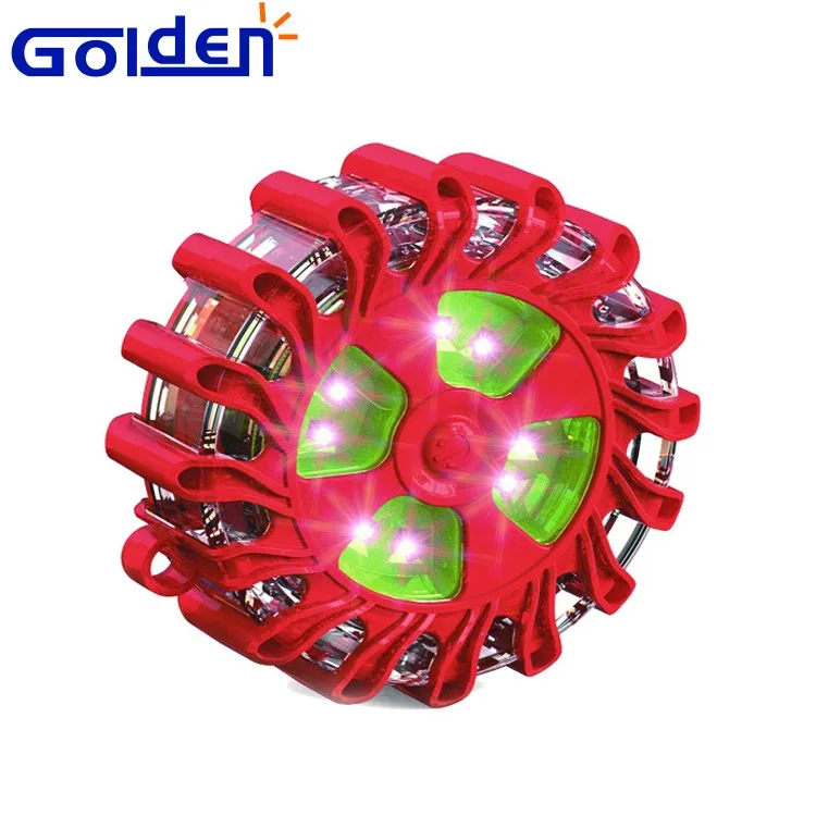A 12+3Pcs AAA battery waterproof magnet yellow amber safety emergency light led road flares includes a base with a light-transmissive cover, and a plurality of LEDs, supported upon the base and within the cover and oriented to provide light in at least three directions through the cover. A power supply is attached to the base, and provides power for operation of the LEDs. Control circuitry is operably interconnected to the LEDs and the power source, and includes a flash controller, configured to selectively actuate the LEDs in any of a plurality of flashing sequences, and a power monitor, configured to automatically monitor the power supply.