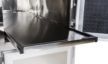 Stainless Steel construction with heliarc-welded seams and joints,ground and polished to a smooth finish.