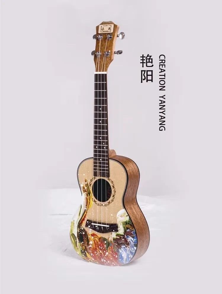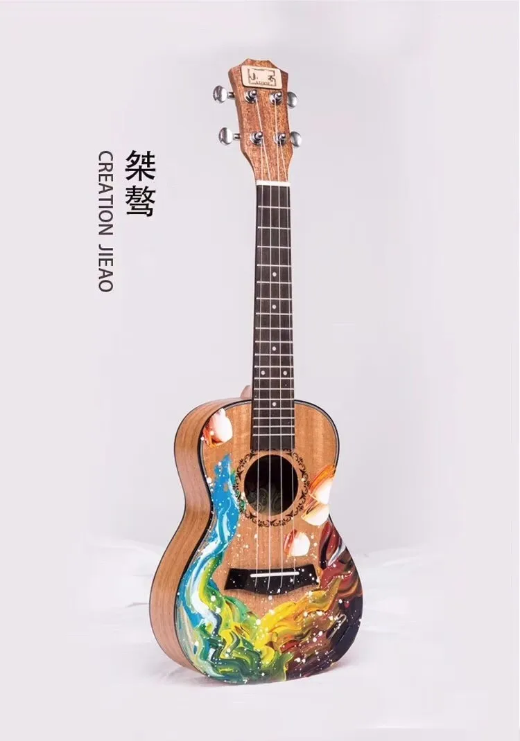 People can make DIY drawing pictures on the black ukulele, make it unique guitar in the world.