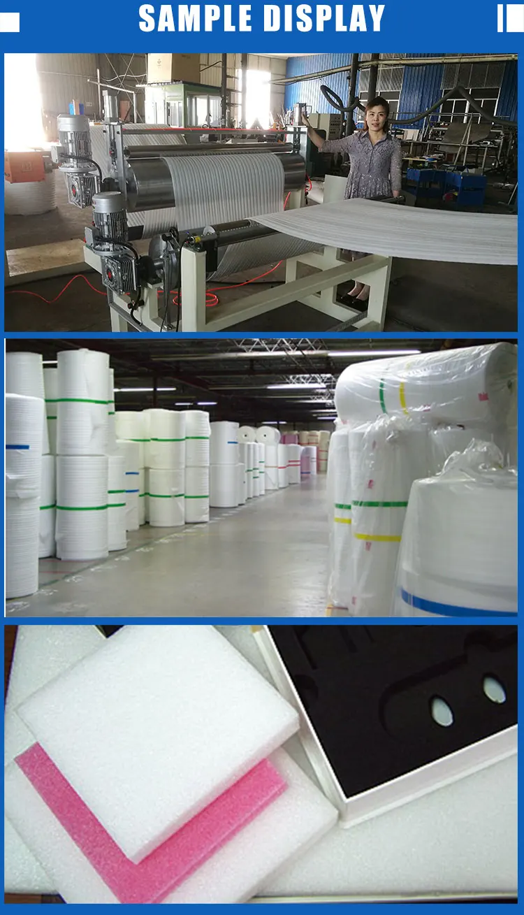 Polyethylene foam sheet(film),also named as pearl cotton, is a kind of new-type packing material with the features of dampproof, shockproof, sound insulation, heat preservation and good plasticity. It is an ideal substitute of traditional packing materials and used widely in the packing of electronic product, commodity, glass, pottery, electrical household appliances, spraying, furniture, hardware product, toy, etc.