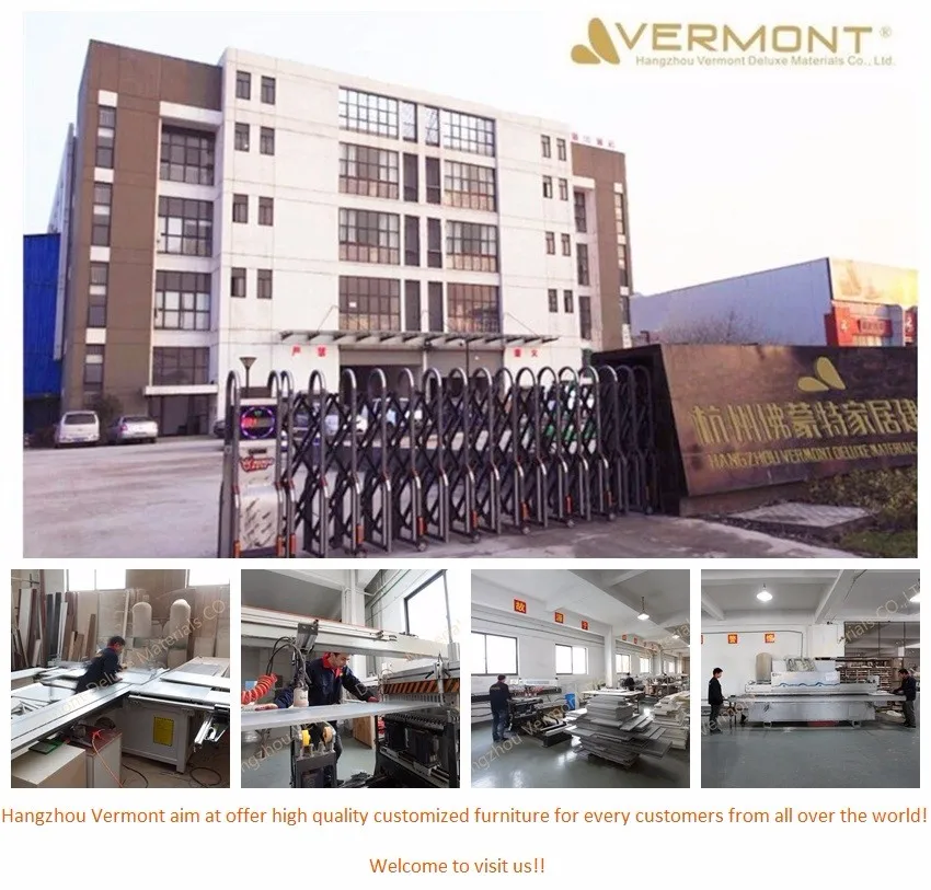 Hangzhou Vermont Deluxe Material Co.,Ltd ( its brand "VERMONHOUSE" ), has been a manufacturer of customized furniture for more than 10 years, providing luxurious modern, classic, antique style kitchen cabinet, wardrobe, bathroom vanity cabinets, TV cabinet, to aim at one-stop furniture designing and producing.
