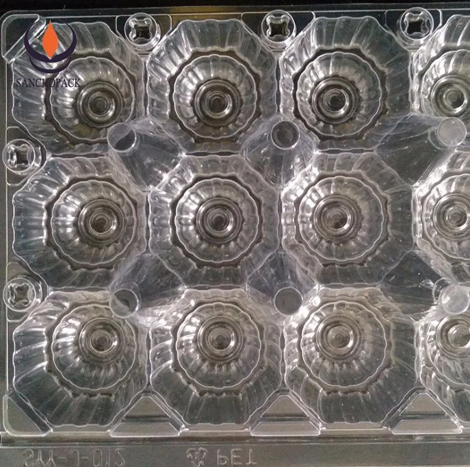 Sancho Thin-gauge thermoforming products include blister packaging, clam-shell, food container, plastic trays for a variety of applications: electronics, food, cosmetics, toys, hardware tools, stationery, We process thicknesses from 0.006" thick to 0.08" thick with material PET, PVC, PPC, OPS, ABS, PC Antistatic, conductive, flocking.