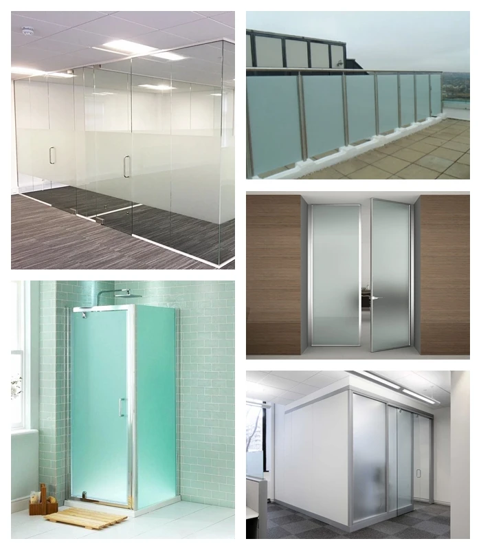 Glass type | Clear frosted tempered glass, ultra clear frosted tempered glass, color frosted tempered glass, curved frosted tempered glass, frosted tempered laminated glass, etc. | ||||||