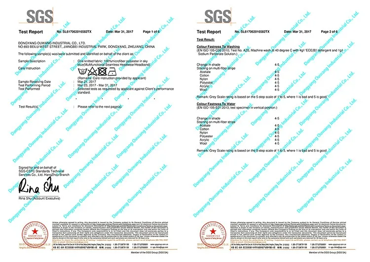 Dongyang Ouwang Industrial Co., Ltd. is a professional Manufacturer of Seamless Headwear, Square Bandana, Neckwear, Fleece headwear, Triangle Bandana, Bandana Baby Bibs..Ect. We offer one stop buying service. From layout design and set up mold, sublimation paper, sublimation transfer, cutting and packing, sewing, quality checking.