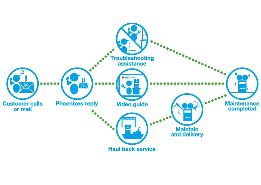 However, the hobbits of customer and workplace are different, so Phoenixes provide maintenance services to keep machine working.