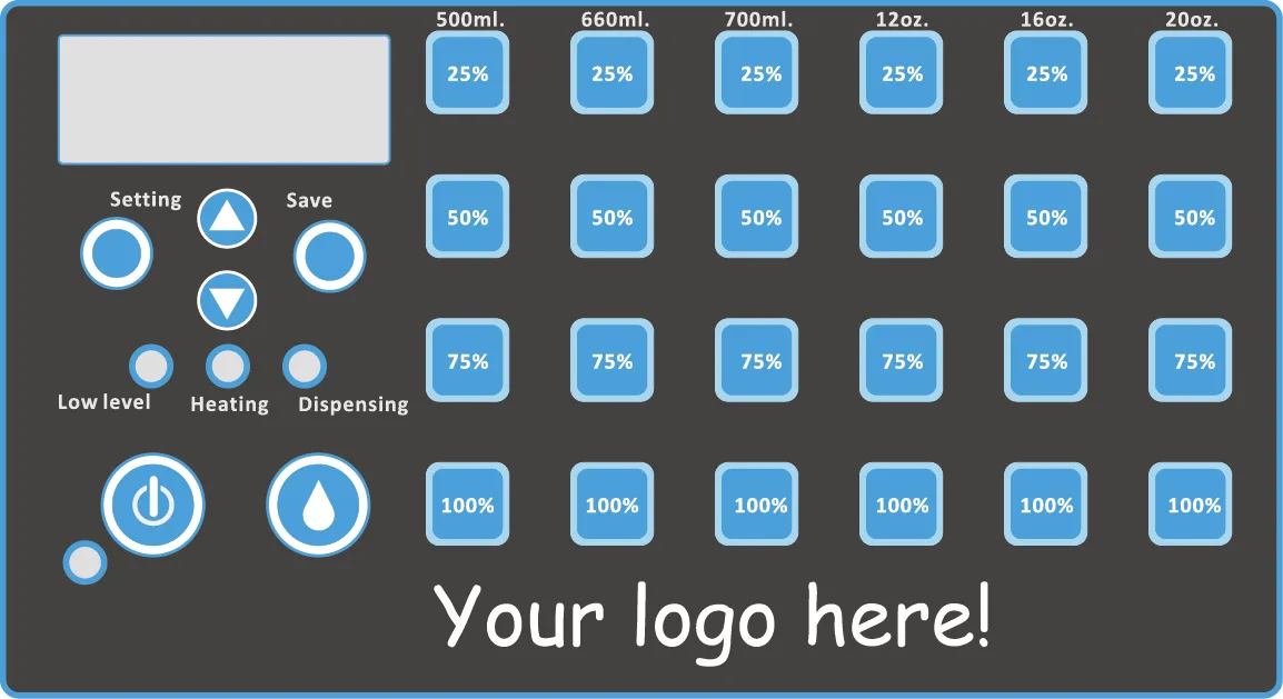 .24 keypads for setting.We can put your logo in the panel of your machine to make it unique!