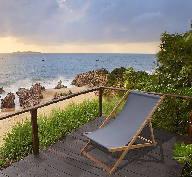 100% Solid Poplar Foldable Sling Beach Chair Garden Seating