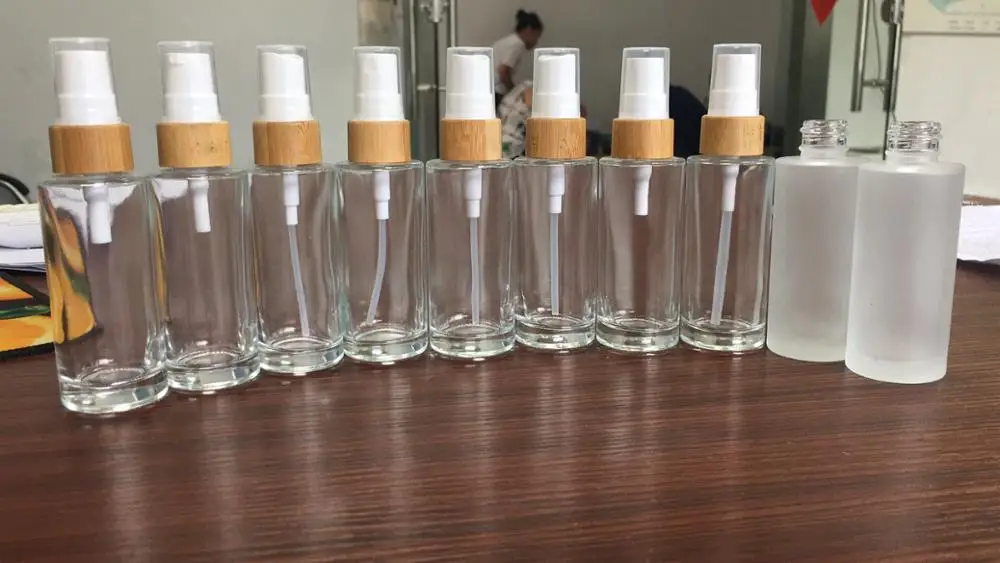 30ml 50ml 100ml 120ml 150ml clear & frosted glass spray bottle with bamboo pump