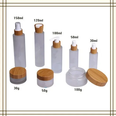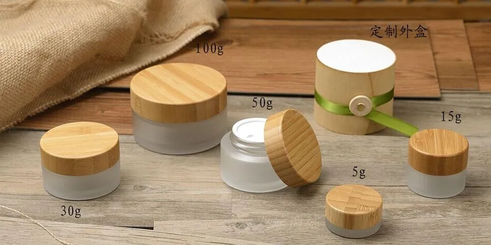 frosted glass cosmetic jar pots with bamboo lid 5ml 15ml 30ml 50ml 100ml