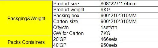 Packing and Weight | Product szie | 808*227*174mm | |||