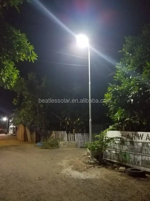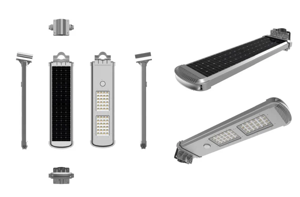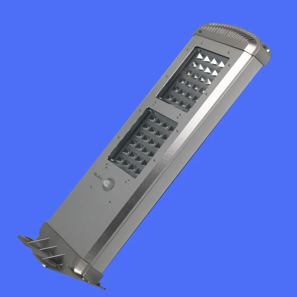 AIO solar street Light is an integration of solar panel,LED light,Lithium battery,Controller,Constant current drives and lighting housing.Combined the tecnologies of potoelectric effect.constant current control,micro controller,infrared motion sensor,remote controller,and mutiple pratical con-trol technologies.Able to illuminate the environment with radiant light.