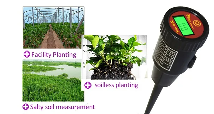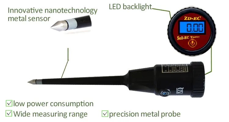 Soil EC tester features a unique metal surface electrode that provides fast and easy on the spot EC measurements for soil and hydroponics nutrient,etc.
