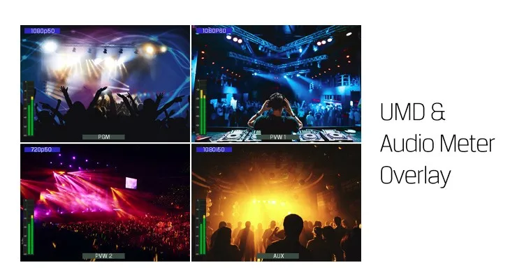 These user-friendly design is the other feature of MV0430, for example, in each individual window, users can set 11 characters UMD overlay separately and adjust it's size and position freely. Similarly, the size and position of the 2–channel audio metering can also be user-defined.