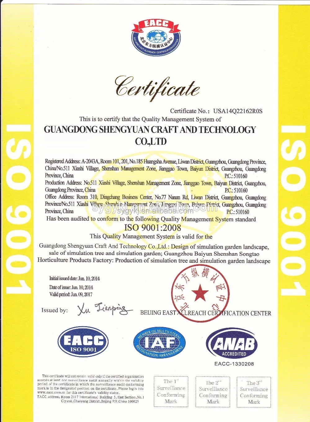 Guangdong Shengyuan Technology Co.,Ltd. Which is subordinated Guangdong Shengyuan Group was established in 2005 in Guangzhou.Our company specialized in artificial products for almost 10 years,indoor and ourdoor landscape,large artificial trees,Green Wall system,Plant sculpture,Potted Plants ,Rockery landscape are available in our company.For over 10 years of development and growth ,Shengyuan gradually forming a high-tech enterprise which base on the technology and creation,and guiding by production and design.