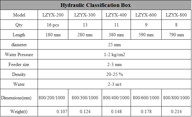 It is widely used in the hydraulic shaker before sorting grading operations, classification and distribution of mine to play the role of quantity in order to improve the sorting efficiency of shaking. Hydraulic classification box has a simple structure, easy maintenance, do not consume power, reliable performance, easy to operate, de-mud and so on ease of operation.