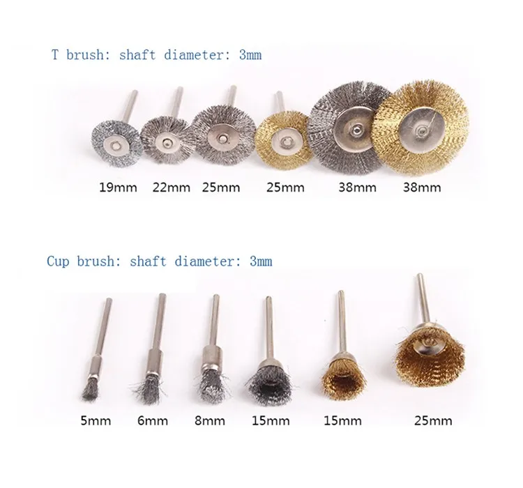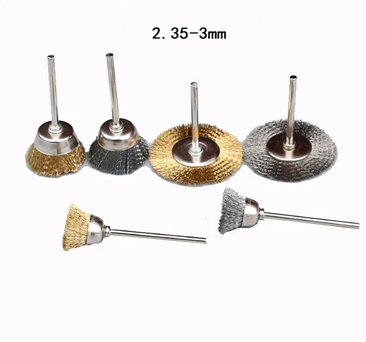 T Crimped Steel Wire Brush With 3mm Shaft Dremel Tool Rotary Die Grinder Removal Wheel Brush