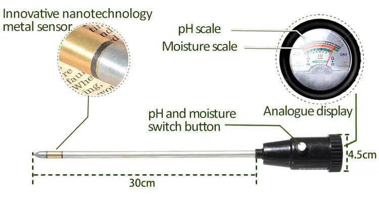 Great for quick pH & moisture of residential: Gardens Planters,Lawn Maintenance,Greenhouses,Vegetable produce.