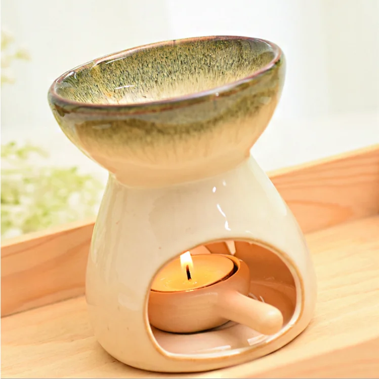 Unique home decoration cheap round ceramic aroma oil burner for essential oil