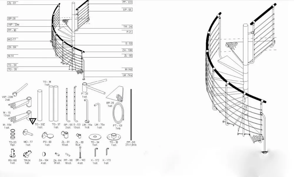 Modular Steel Indoor Curved Decorative Spiral Staircase Design