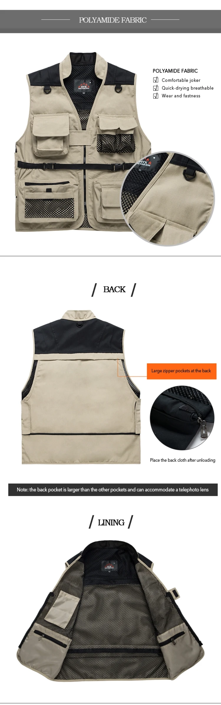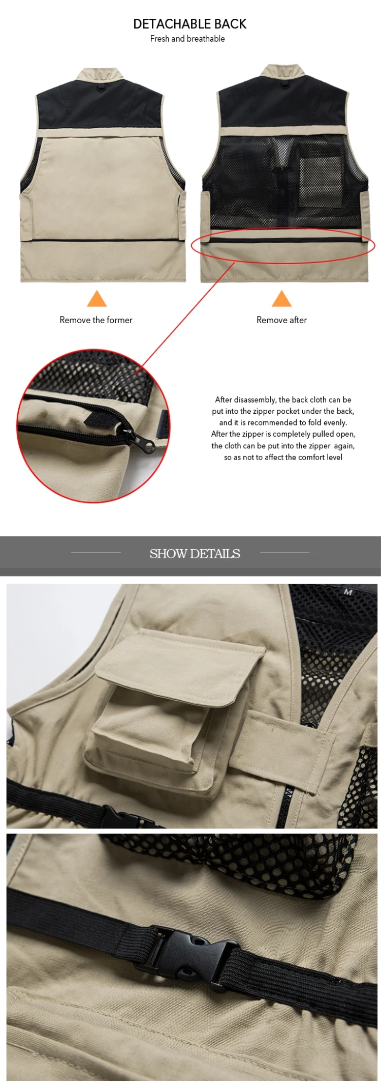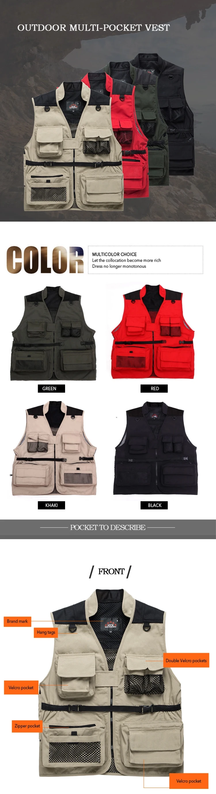Advantage 3Multi-pocket design, suitable for leisure, work, fishing, photography, hunting