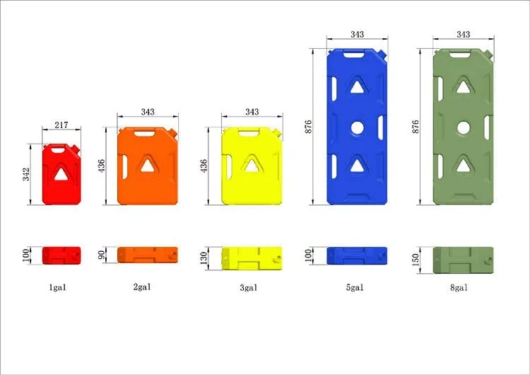 5 Gal:343*876*100mm (18.9Liter)
