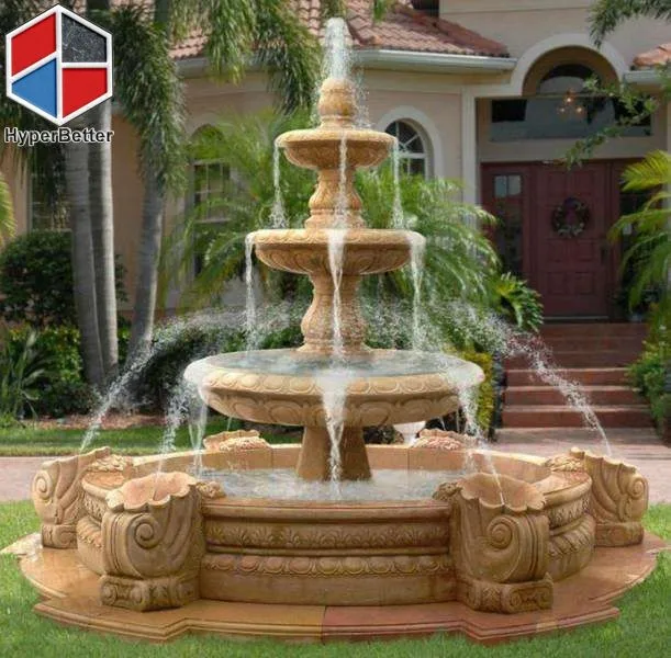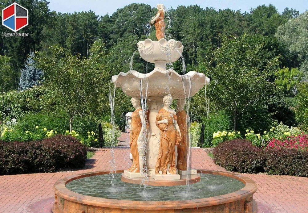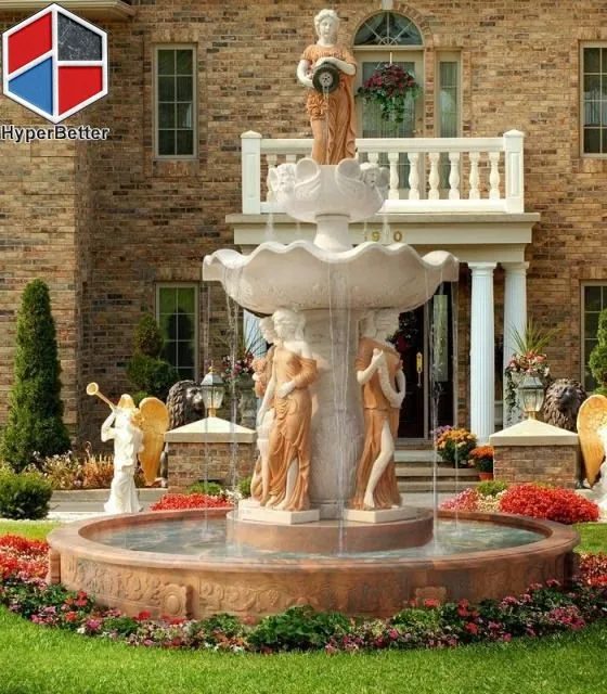 Luxury large white marble fountain and outdoor tables | ||||||