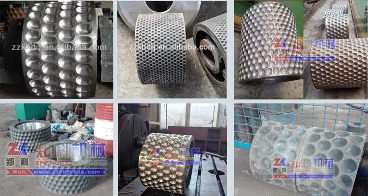 The main rollers of kaolin clay bricket making machine adopt high-quality manganese steel materials (65Mn/9Cr2Mo), greatly improving the wear resistance and pressure ability, make the bricket making machine has a long service life, has been widely used in recent years.