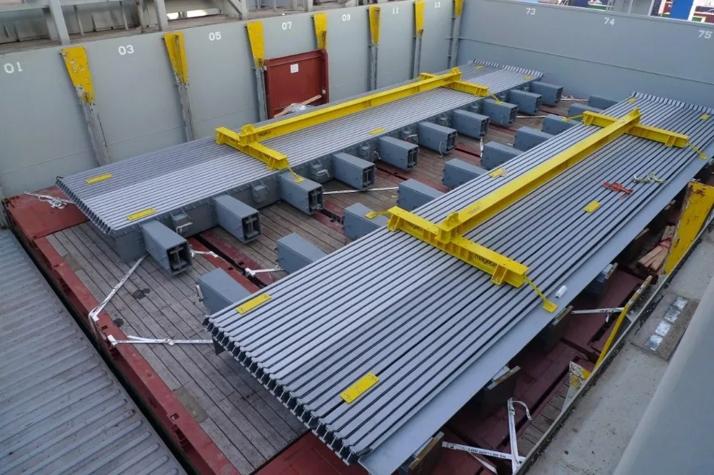 The load transferring system ensures the traffic load is transferred from modular center beams to support beam, box bearing, steel box and finally to bridge structure. The gap control system is mainly composed by elastomeric components, which control the gap opening and close of modular center beams when the bridge opens and closes. With the function of gap control system, the gaps are ensured to be even and every gap is controlled to be less than 80mm. The individual gaps are sealed by watertight elastomeric profiles.