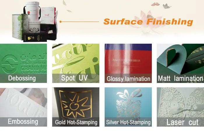 Glossy/Matt Lamination,Varnishing,UV Coating,Gold/Silver Hot stamping,Embossing. |