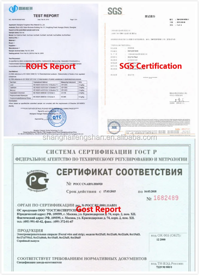 We can make the fecral and nichrome resistance strip width max.250mm,min.thickness 0.05mm.