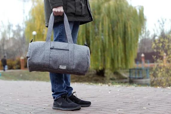 Our canvas duffle bag is great for a carryon travel bag or a gym bag. It has one outer pocket with zipper and one small internal pocket.
